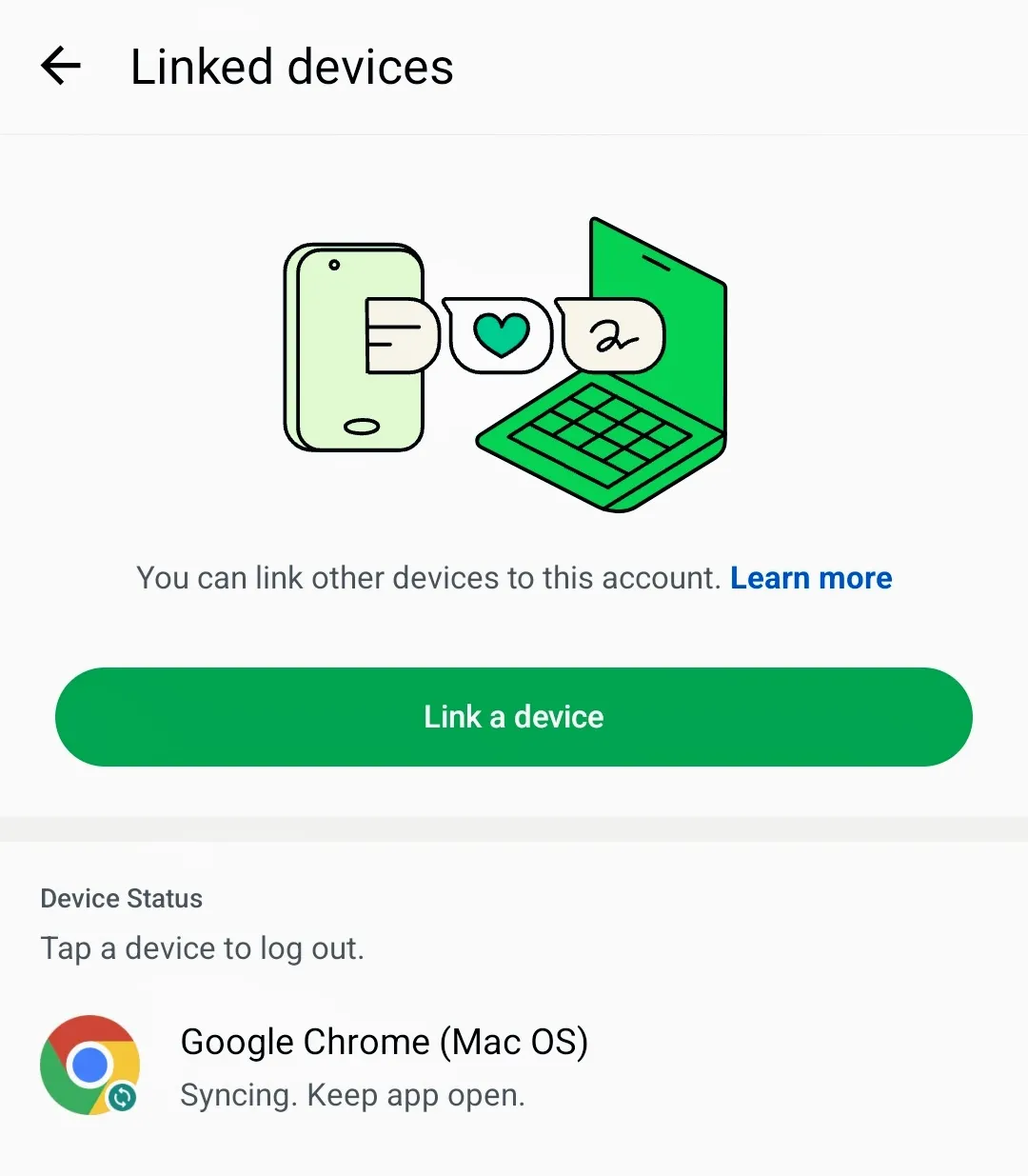 - Select “Linked devices,” then tap “Link a device.”
