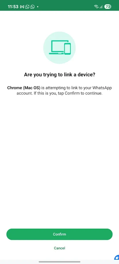 - You will receive a message from WhatsApp asking if you are trying to link a device.