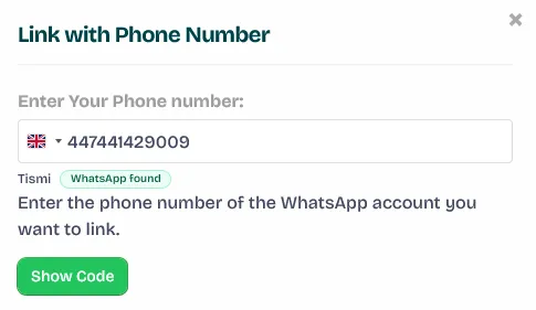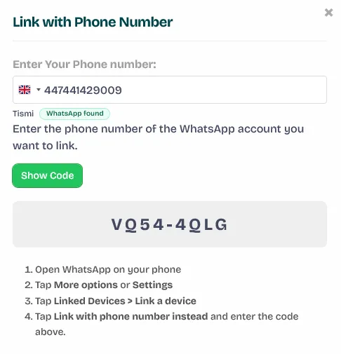 - On your Wawp dashboard, click the “Link with Code” button.