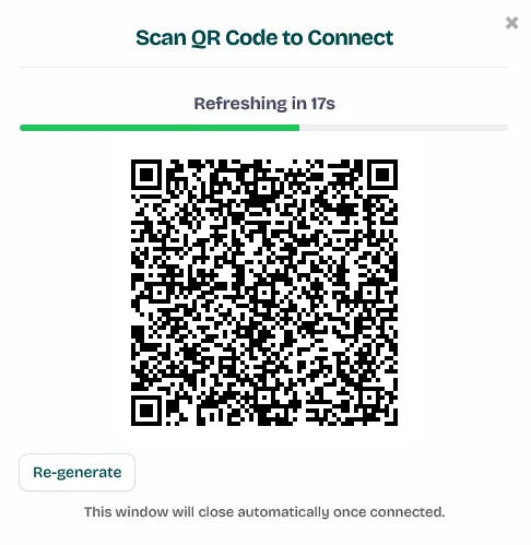 - On your Wawp dashboard, click “Scan QR” within the instance settings. A pop-up will appear with a QR code.