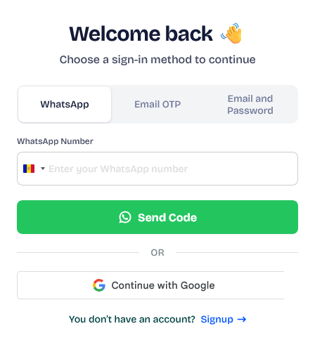 You can provide login via WhatsApp OTP, email OTP, email with password, or all of them together if you want.