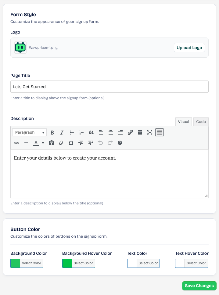 You can customize the colors, elements, and all details of the registration form based on your site’s identity.