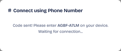 Connect by Code: This method is faster if you do not have a phone or cannot use the QR code or connect a phone number to your customer. In this method, you need the number that you will connect to your system.