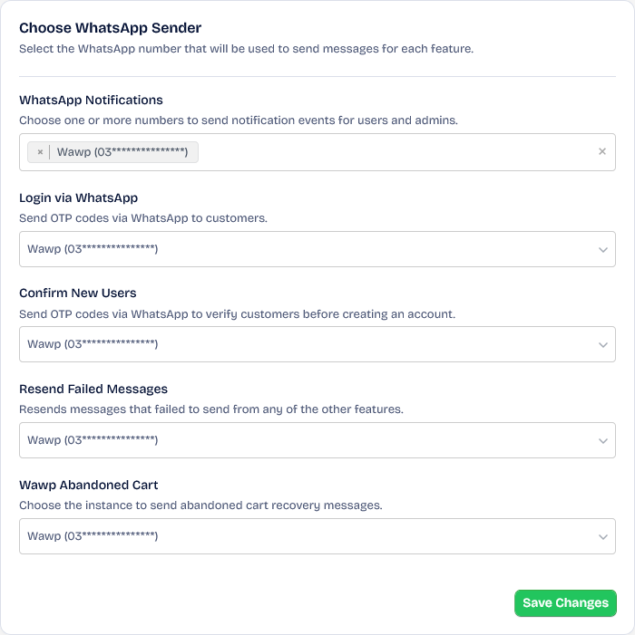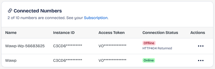 This section shows you the online and offline numbers, indicating their status for later use with Wawp plugin. For it to work properly, make sure the status is Online.